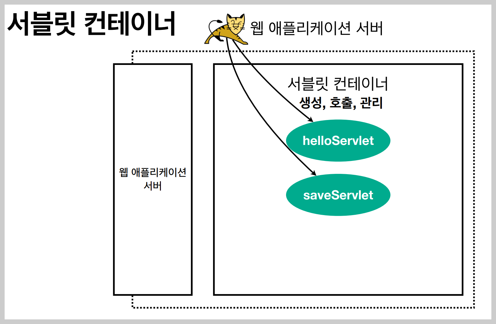 이처럼 서블릿을 지원하는 WAS를 서블릿 컨테이너라고 한다.