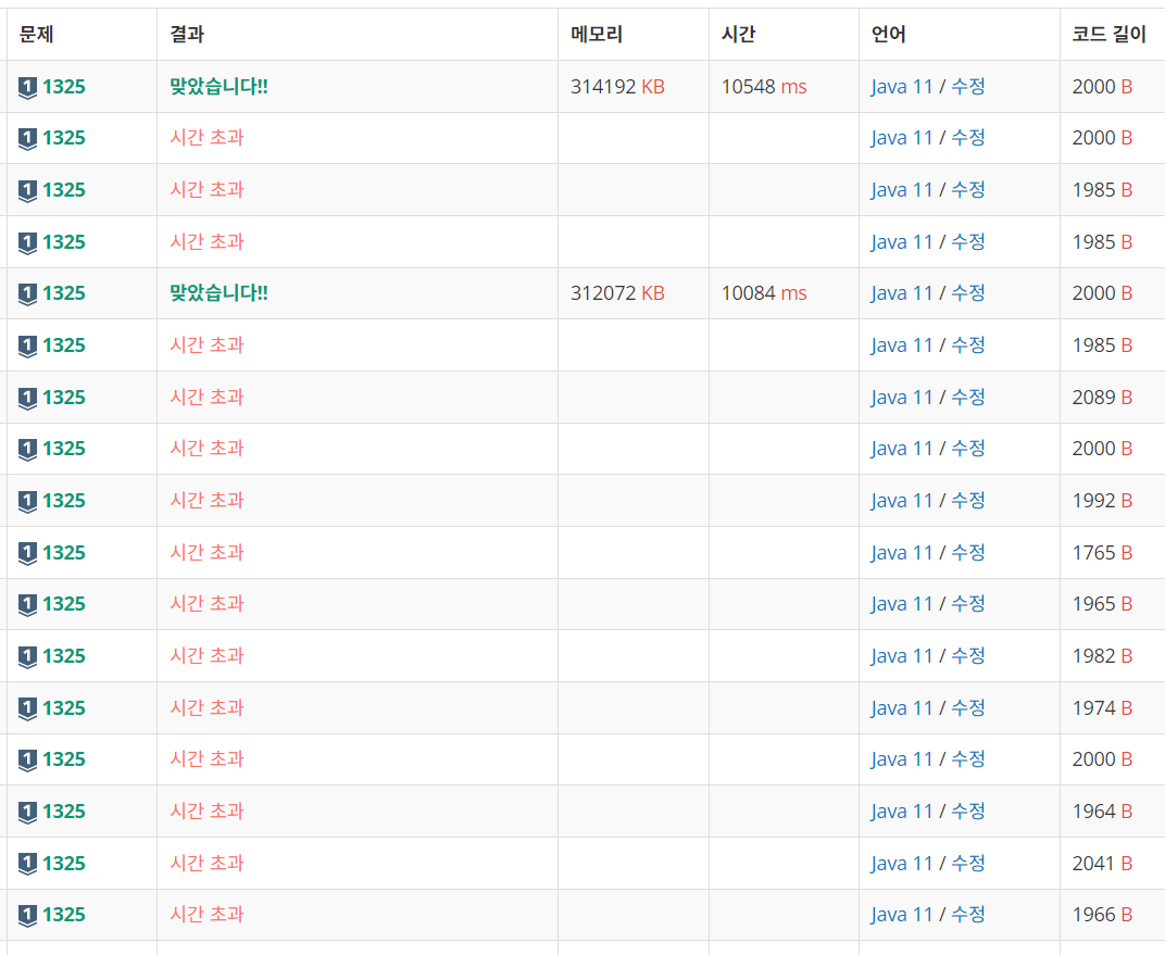해당 코드도 어쩔때는 통과하고 어쩔때는 시간초과에 걸린다..ㅎ