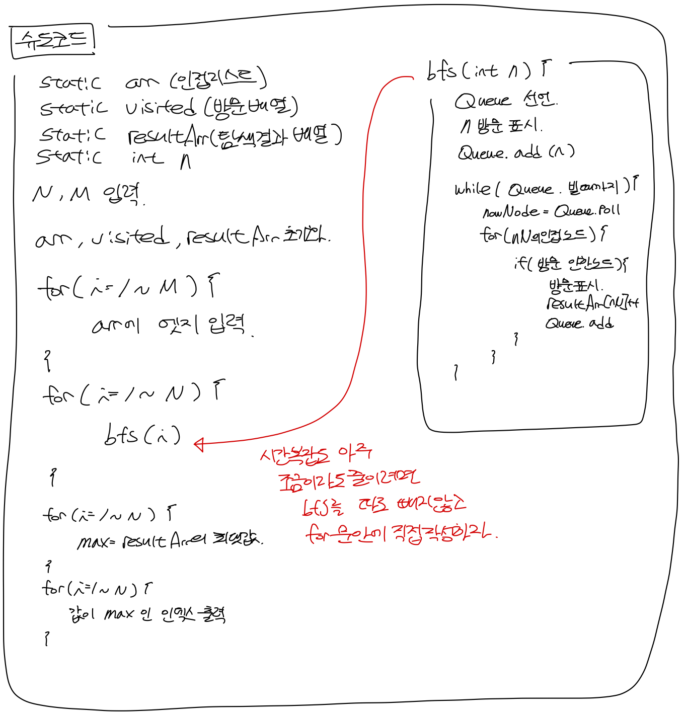 for (i=1; i<n+1; i++) { // bfs를 따로 뽑지 않고 안에서 구현해야 시간이 조금이라도 줄음