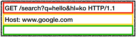method(GET) / request-target(/search?q=hello&hi=ko) / HTTP버전 으로 이루어져있다.