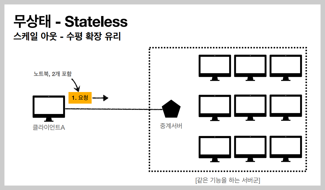 무상태는 서버가 클라이언트의 상태를 보존하지 않는 것이다.