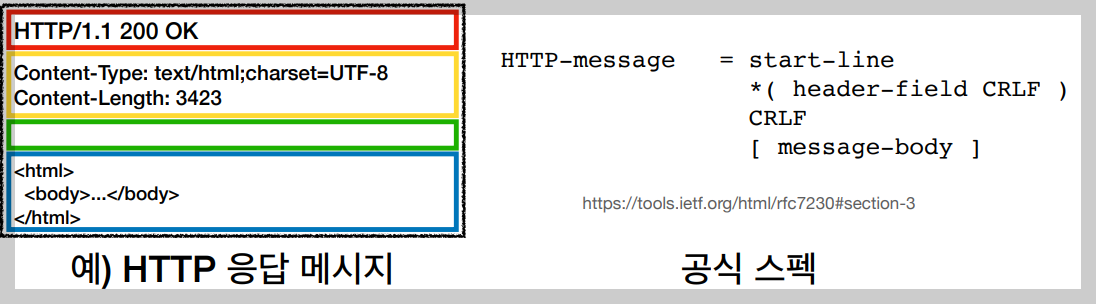 HTTP 메시지는 시작라인 / 헤더 / 공백라인(CRLF) / message body 로 이루어져 있다.